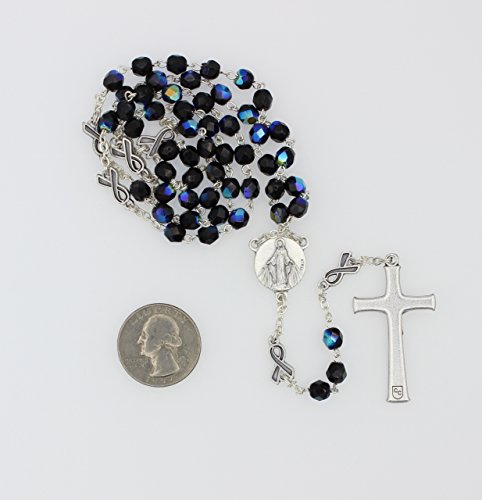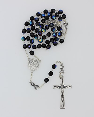 St Peregrine 6mm Black Glass with AB Finish Bead Rosary