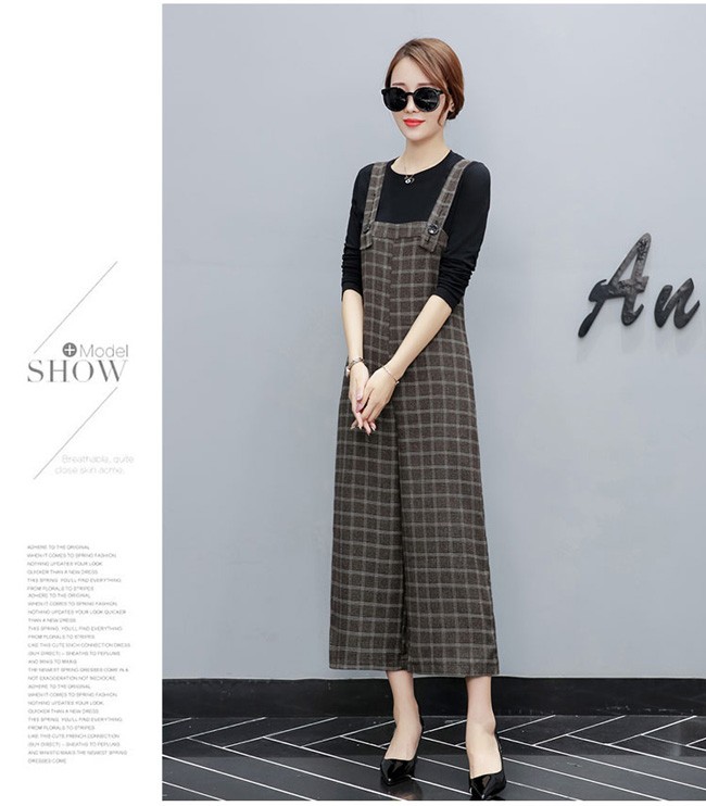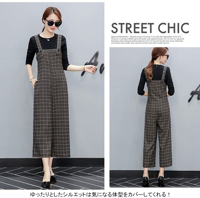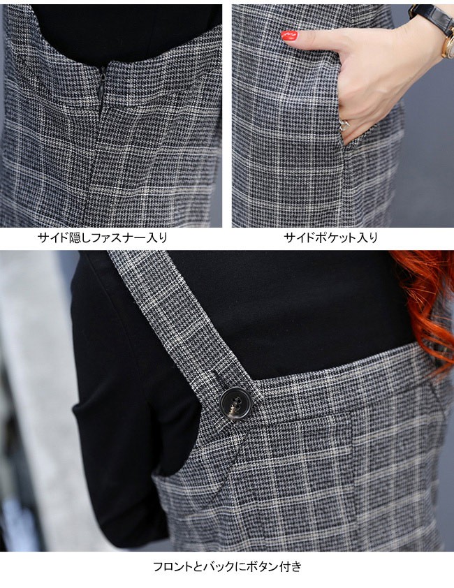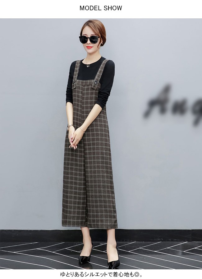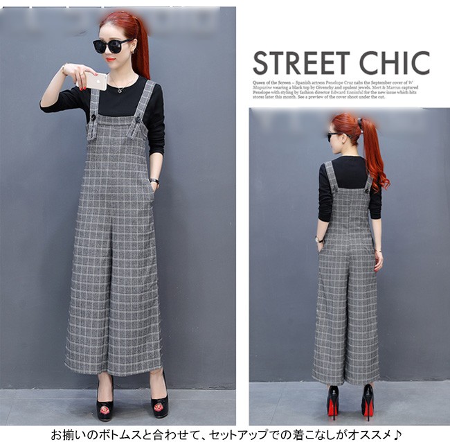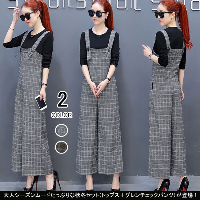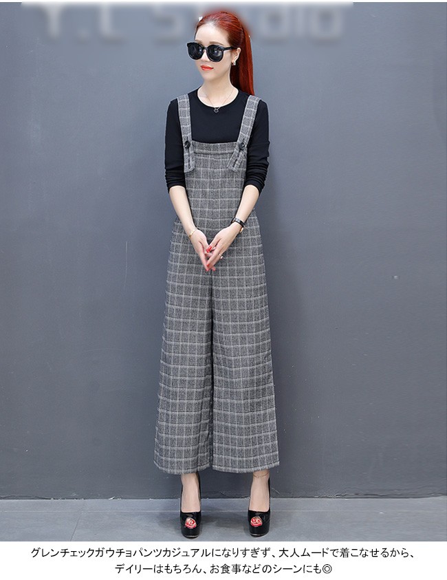 | 商品名 | 2点セット セットアップ グレンチェックサロベット+プルオーバー ラシャサロペット ワイドパンツ オールインワン レディース 九分丈 グレンチェック オシャレ 2017秋新作 |