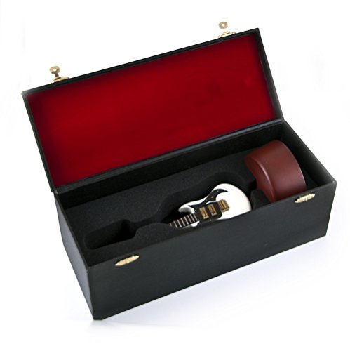 Studio : MusicBoxAttic Publisher : MusicBoxAttic Binding : Kitchen Product Description Tune: 18 note movement (please see above for available song titles) Miniature replica of the iconic White electric guita Mounted on a matte circular wooden bas Instrument rotates with base to sound of melod Wood/Materials: Wood, Painted Finis Dimension(s) item w/ stand: Height - 11.5"; Width - 4.5" 0
