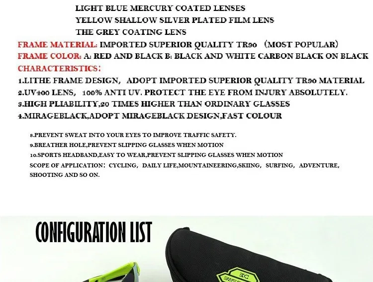 Use:Bicycles, motorcycles, fishing, goggles, Hiking