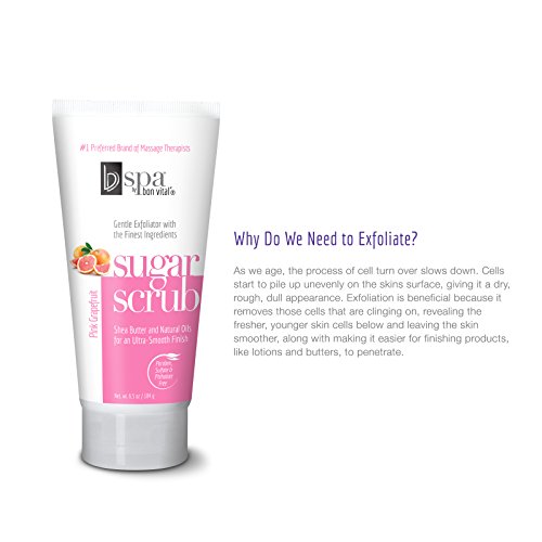 Now you own the spa secret for radiant skin. Our premium exfoliator blends nature’s softeners-Jojoba, Olive and Safflower oils—with smooth buffing sugar crystals. Together, they gently remove dull, tired skin to reveal your natural glow. Never harsh, easy to rinse and non-sticky, our Sugar Scrub is great for all skin types and perfect for your at-home spa routine.