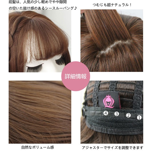 ウィッグ ミディアム フルウィッグ セミロング レディース かつら ロング ストレート 原宿 ハロウィン 自然 小顔 キュート 医療用 コスプレ素材:耐熱性ファイバーサイズ:約40cmカラー:ブラウンブラック チョコレート 青木亜麻グレー自然なボリューム感にも華やかさがあり、重さも感じさせない!前髪は、人気の少し軽めでやや隙間の空いた抜け感のあるシースルーバング♪つむじも超ナチュラル!分け目部分が広範囲設計なのでアレンジ自由★普段使いはもちろん、 パーティー 浴衣 花火 成人式 メッシュ ツート 結婚式などの特別な日の装いのイメージチェンジにも最適です!アイロン、ドライヤー使用可能※シャンプー使用可能※サイズは、実寸を測っているため多少の誤差はございます。実商品とPC画面では、多少見た目の色に違いがございます。初期不良の場合、未使用の商品のみ到着日から7日以内にご連絡頂ければご返金、交換対応させて頂きます。●商品が到着しましたら、必ず中の商品を確認していただき、商品の到着後、3-4日間以内に必ず弊社までご連絡ください。★いかなる理由であってもご使用後の返品交換は承れません。