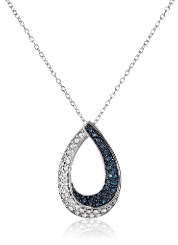 -. Title : Sterling Silver White and Montana Blue Swarovski Elements Crystal Open Teardrop Pendant Necklace, 18"