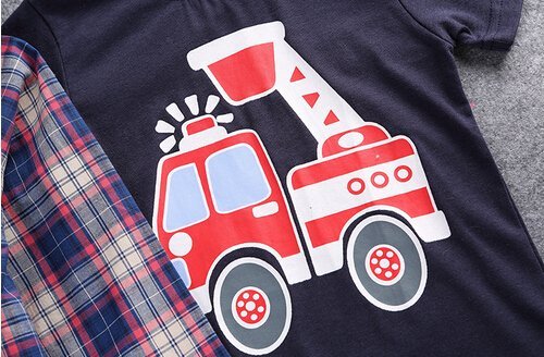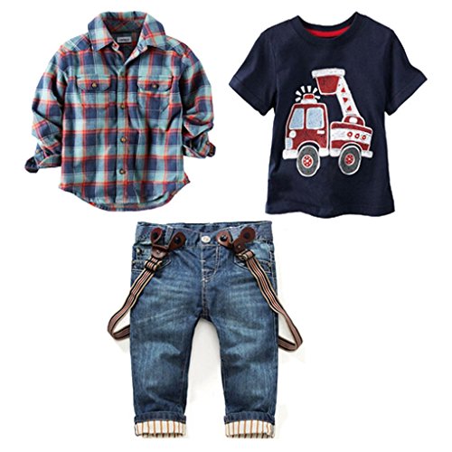 -. Title : LUKYCILD Baby boy suit plaid shirts+car P.R.Inting t-shirt+jeans 3pcs
