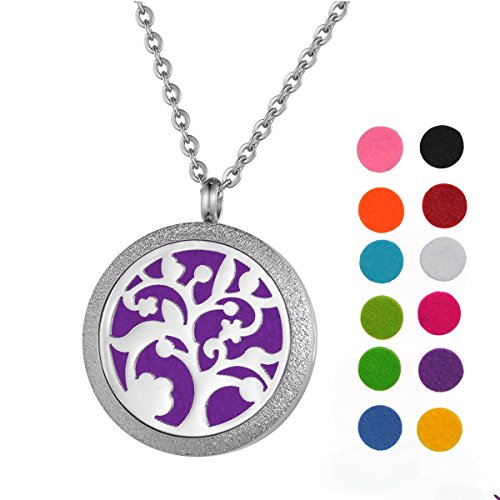 -. Title : Stainless Steel Aromatherapy Essential Oil Diffuser Necklace with Tree of Life for Women,Silver Tone