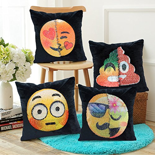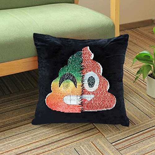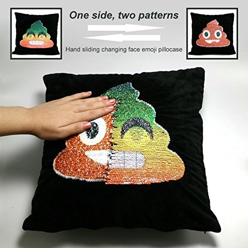 Studio : GUIGU Publisher : GUIGU Product Description Features: Each pillowcase has two facial expressions, hand gently wave, you can easily change the emoji Sequins are dense and not easy to fall, the material is soft fluff, not easy to tear Zipper on the side of the pillow case, you can easily insert a pillow core Decorate your home office, such as bed, sofa, car, party, and also as a good gift to sent to your family, child Specification: Material: 90% Soft fluff material and 10% sequins Size: 40CM * 40CM/16 * 16 inches Closure: Hidden Zip The pattern is on the only one side Package Content: 1 Pcs of Pillowcase (no inner) Note: There may be some color differences due to lighting and different monitors Please allow 1-2cm size error because of manual measurement. Please hand wash. Reminder: when you buy a pillow cover, don't use the same size pillow insert; that will usually end up looking limp and sad.