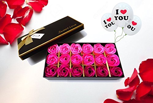 2 ITEMS IN ONE GIFT SET FOR YOUR LOVED ONES. including 18 rose soaps in a 9”x4.7”x2” gift box and 10 white “I Love You” Balloons.