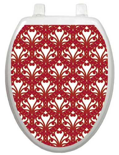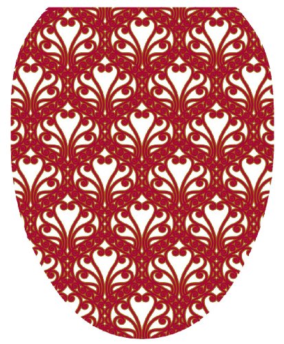 Toilet Tattoos TT-3000-O Queen Ann's Lace Red and Gold Decorative Applique for Toilet Lid, Elongated
