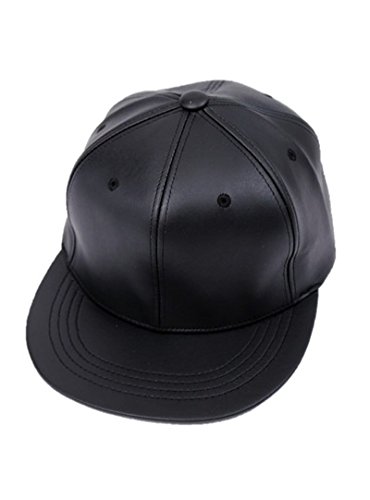 -. Title : (ディアリオ) Diario 平らつば フェイクレザー キャップ 野球帽 帽子 無地 シンプル PU レザー 黒 メンズ レディース ユニセックス 男女兼用 スナップバック サイズ調整可能
