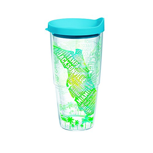 Tervis Florida Typo Map Wrap Clear Inner 24oz Tumbler with Turquoise Lid