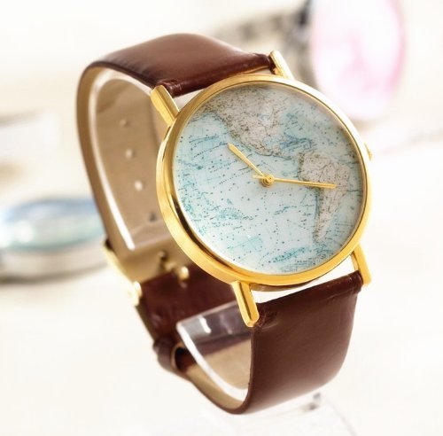 -. Title : Gift-HK New Mens Women World Sea Map Table Leather Wrist Watch Quartz Brown