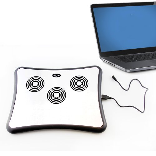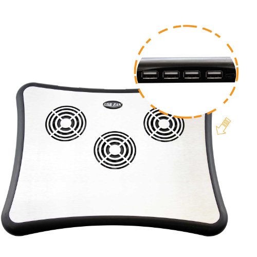 -. Feature : 3 fans provides extreme air flow. / High thermal heat dissipation prevents overheating . / Great ergonomic shape for simple typing. / Support low noise. Slim and Smart design. / Helps notebook to operate at full speed even while running high performance applicatis. / Lightweight and compact - Perfect for portable user. / Powered by 1 USB cable. / Plug-and-play: no drivers or software needed. / Rated Voltage: DC 5V. / Speed: 1500-2300 RPM. / USB Port: 4. / Dimensions: 11.8 x 9 x 0.5 inches.
