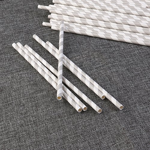 -. Title : ULTNICE 100pcs Party Striped Paper Straws , Paper Drinking Straws for Party (Grey)