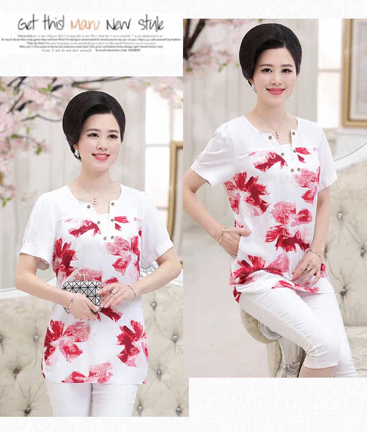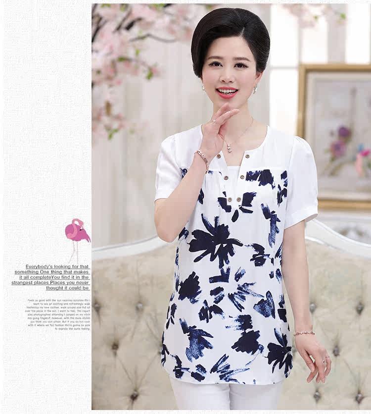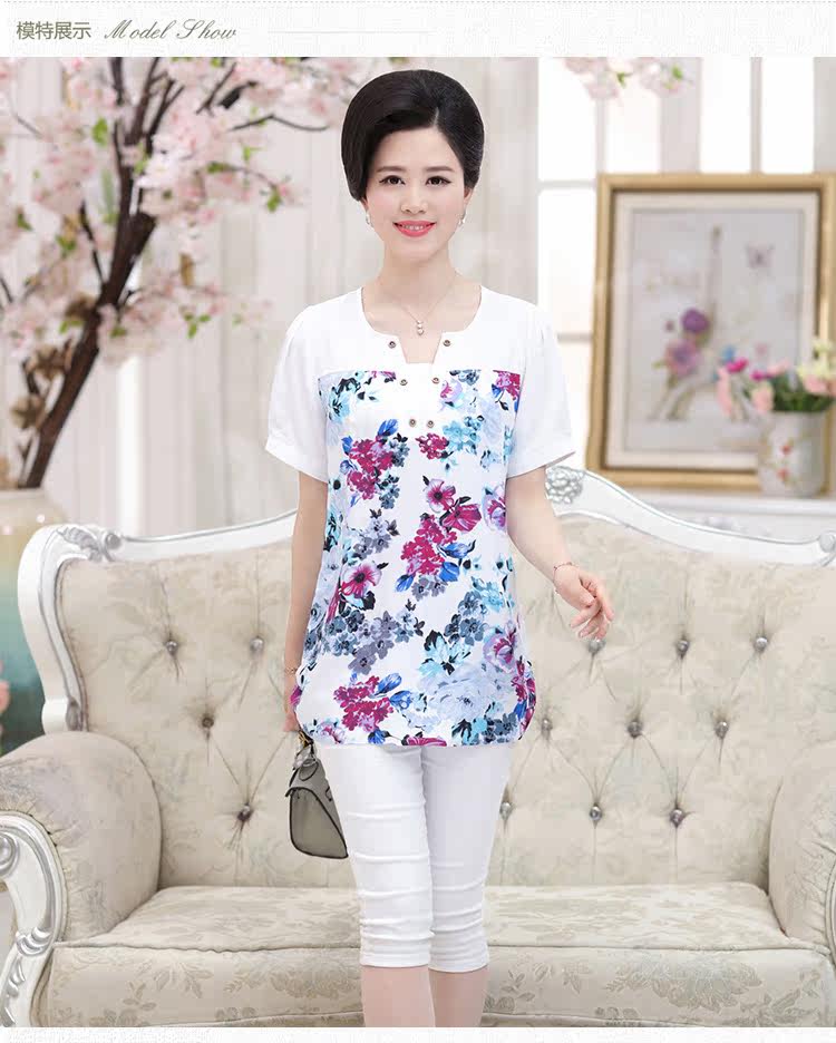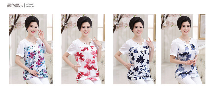 中老年女装夏装短袖T恤中年女装夏季上衣40-50岁妈妈装夏装T恤衫