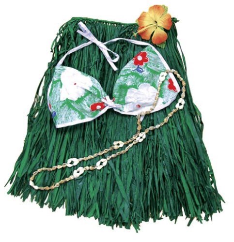 -. Brand : Islander -. Department : womens -. Feature : Add a special touch to your next luau with this authentic hula skirt set. / Adjustable ties. / Includes hula instructions. / Hula Skirt Set Includes: Natural raffia skirt, cotton bikini top, flower and shell lei. / Cotton bikini top will vary in design and color. -. ProductGroup : Apparel -. ProductTypeName : ADULT_COSTUME -. Title : Islander Hawaiian Hula Grass Skirt Set Cotton Bikini Top Green
