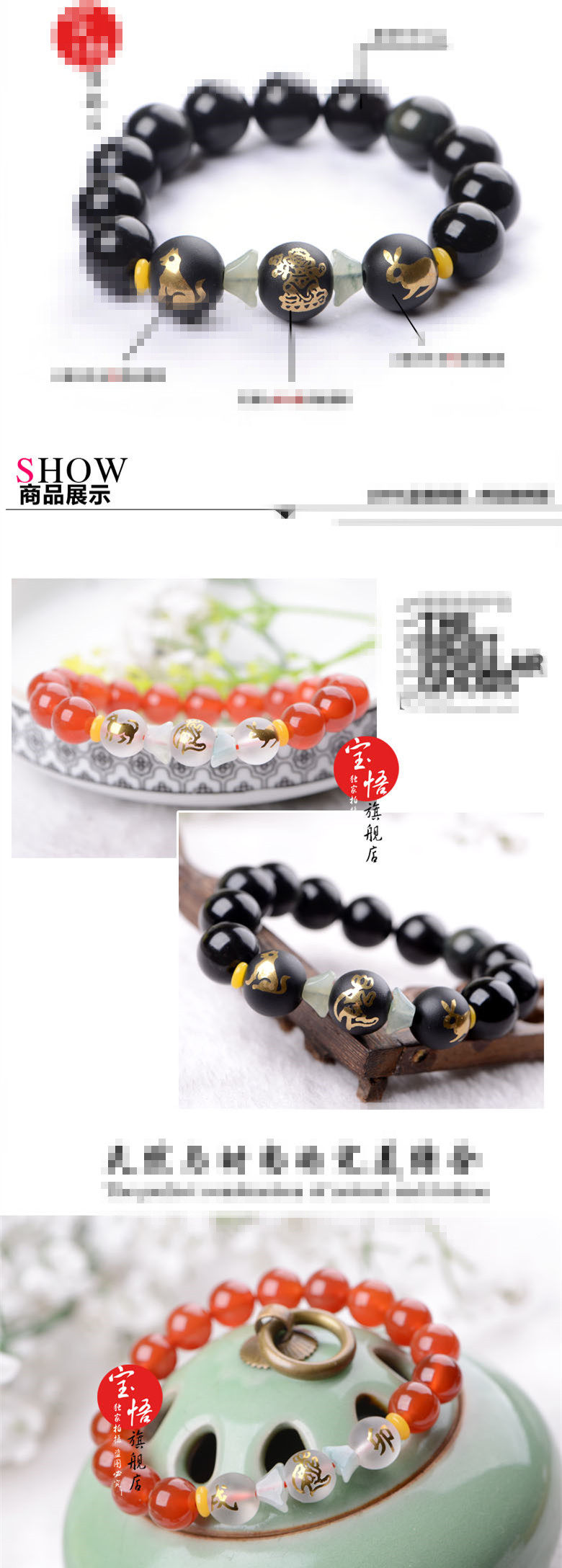 开光属兔属狗人吉祥物黑曜石红玛瑙卯戌太极男女款手链