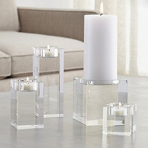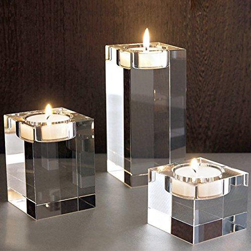 DecentGadget Heavy Clear Crystal Tea Light Holder Cuboid Candle Holder for Party Ceremony Wedding Centerpiece Home Decoration Pink Tea Light Candle Included (1.6+2.4+3.2'')