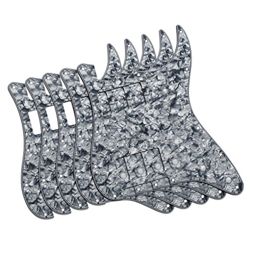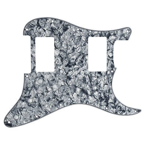 Product Description Specification:Humbucker-Humbucker pickguard, 11 hole standard mounting pattern with counter-sunk mounting screw holes.3 control pot holes pre-drilled in Standard Volume-Tone-Tone Positions (Positions 1, 2, 3).1 standard size switch cut with 2 switch mounting holes (1 each side of switch cut; not counter-sunk).Humbucker hole size: 38mm x 70mmHumbucker screws center/center: 78mmMaterial: Made of 4ply Pearl Plate, with off set screw holes and beveled edge.With pure aluminum foil shielded.Color: Grey Pearl/Smoky Blue PearlWith protective film on the surface, while using please split it off.Note:Item's color might be different from the picture because of the aberration.Package Includes:5 x guitar pickguards 0