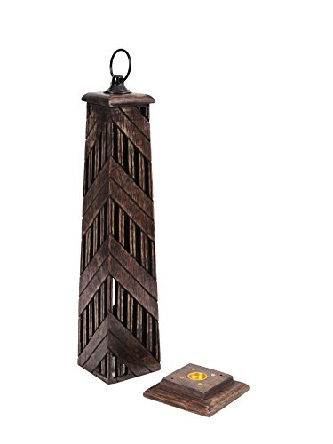 Handcrafted from durable Mango wood with a dark finish, this incense stick holder has a slender tower shape with jaali work.