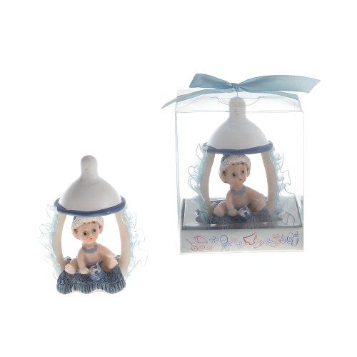 -. Feature : Baby Sitting Under a Pacifier Favors - Blue, Set of 12 / Baby sitting under a decorative pacifier / Comes encased in an appealing gift box with clear plastic front and a satin ribbon bow / These favors are designed for gifting right out of the box and will leave an everlasting memory on your guests / Made of Poly Resin
