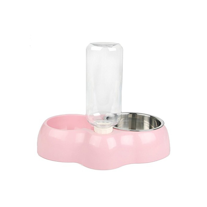원본상품명:ペット用食器 犬猫用エサ入れ ボウル 自動給水器 ダブルボウル付き ペット ステンレス鋼製食器 餌 水やり ウォ?タ? ボウル 水?み ボトル付き (ピンク)