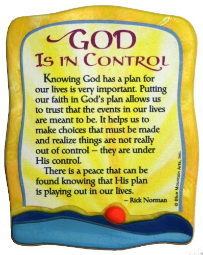 - Blue Mountain Arts Sculpted Resin Magnet, God is in Control by Rick Norman; magnet measures 2-7/8 x 3-3/4 inches