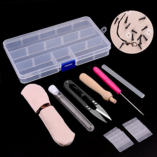 - Needle Felting Starter Kit, include Felting Needles, Safety Eyes, Scissor (random color), Awl (random color handle), Wooden Felting Tool, Leather Finger Cot, Clear Glue Stick, Free Storage Plastic Box