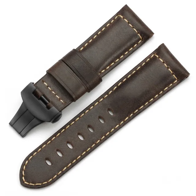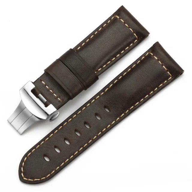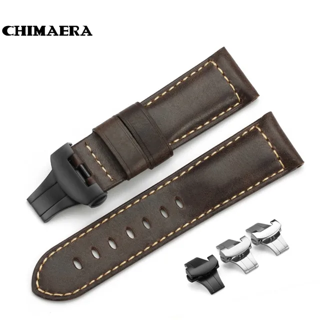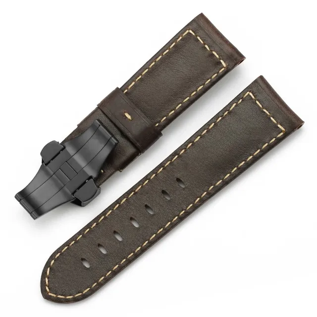 | [해외]Chimaera 24 미리메터 다크 브라운 assolutamente 이탈리아 가죽 빈티지 시계 밴드 팔찌 배포 버클 파네 시계 스트랩 |