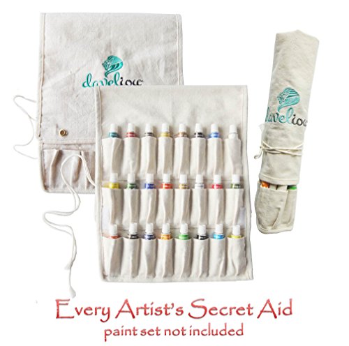 - INNOVATIVE PAINT SET PROTECTION: The roll-up canvas paint holder safeguards the integrity of aluminum tubes and protects paint sets from loss or damage. Perfect for ordering, arranging and displaying paint tubes while painting. The conveniently secure roll-up function includes 24 slots to hold a variety of the most popular colors and paint mediums safely - never misplace a color or favorite medium again. Affords comprehensive art uses and applications for all media.