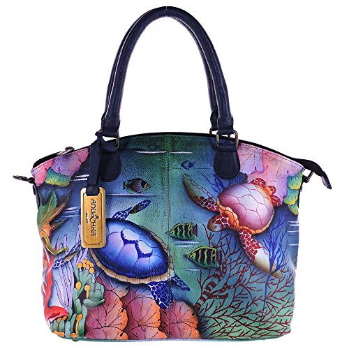 Why ANUSCHKA? Because she is like no other! One thing is for sure - you can not be indifferent to this brand. This Anuschka Hand Painted Genuine Leather Convertible Satchel is one-of-a kind hand painted on grained cowhide, each peace sketched, painted in layers to ensurers long lasting quality and then checked and re-checked twice.Vibrant pastel colors, beautiful design, top-quality Anuschka Hand Painted Genuine Leather Convertible Satchel is created in mind for a girl who loves the uniqueness, easy-going style and to be like no other! The supple pebbled genuine leather bag is finished with stylish top stitching.Feature