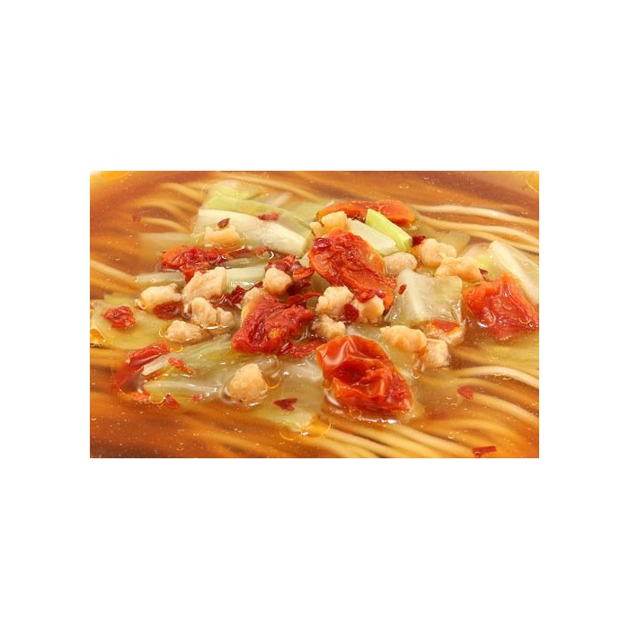 원재료:면(소맥분,식염,대두 음식물 섬유)고, 스프(간장,당류,양조초,식염,식물성 기름지,된장,향신료,효모 엑기스,마늘 Paste,표고버섯 엑기스,다시마 분말)고, 인지(든가) 질투하다(양배추,토마토,알맹이 모양 대두 단백,당류,고추)고, 물어 들이마시고, 증점제(《구가무》)고, 카라멜 색소,산화 방지제(비타민E)고, 파프리카 색소,홍국색소,(원재료의 일부에 참깨를 포함한다)