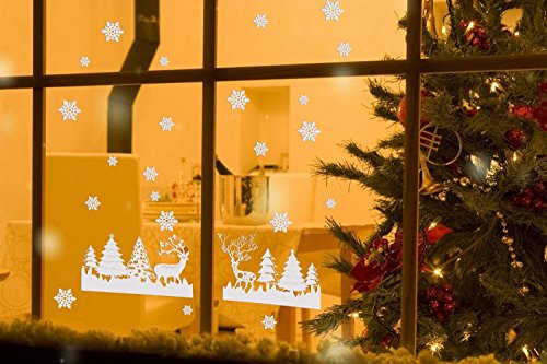 - Reindeer and Snowflake: the snowflake clings stickers are made from vinyl, Add a festive touch to Christmas decorations. Made the house look cozy and put you in a winter wonderland right away.