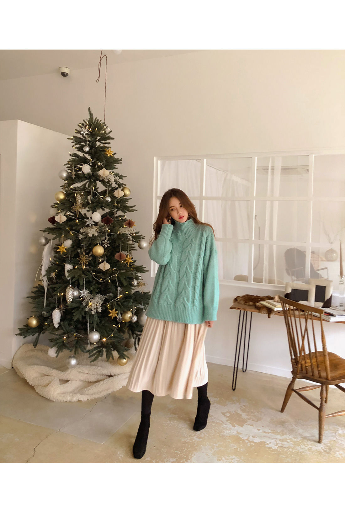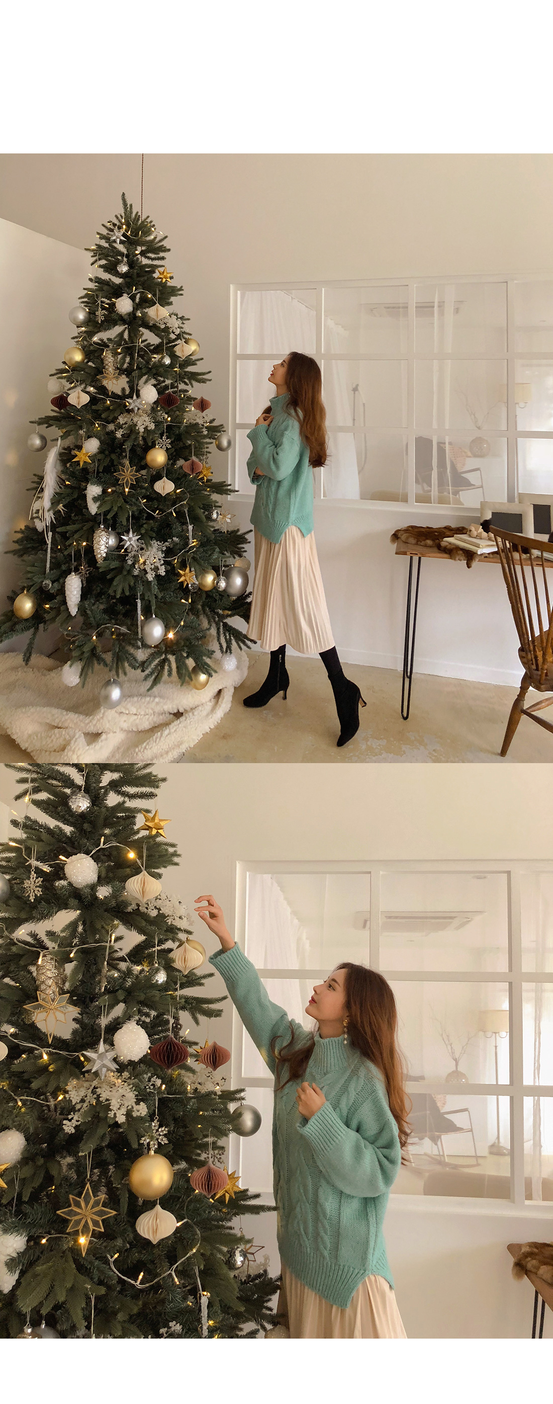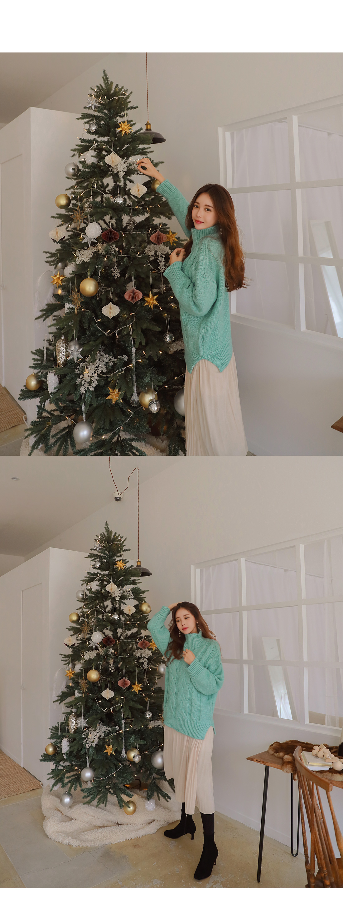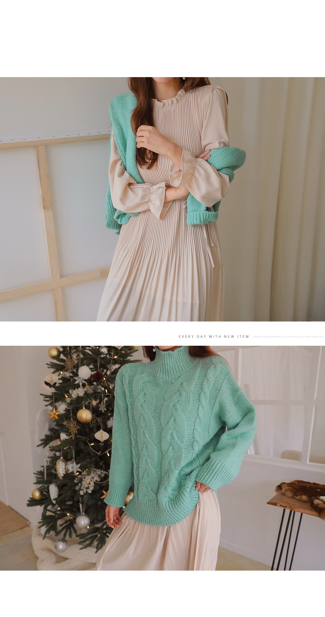 넥라인과 소매 끝 프릴이 포인트를 준답니다.