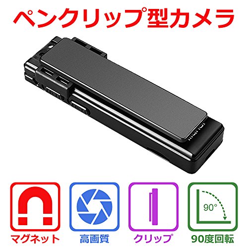 -. Title : 隠しカメラ ペンクリップ型 軽量超小型カメラ マグネット内蔵 防犯監視カメラ 1920*1080P高画質 90度回転レンズ 循環録画 動体検知機能 TFカード対応(別売り) 暗視機能搭載 会議記録 録画録音対応 日本語説明書付き