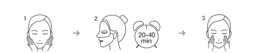 -Peel off, discard the film liner, and apply mask adjusting around eyes and mouth.