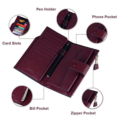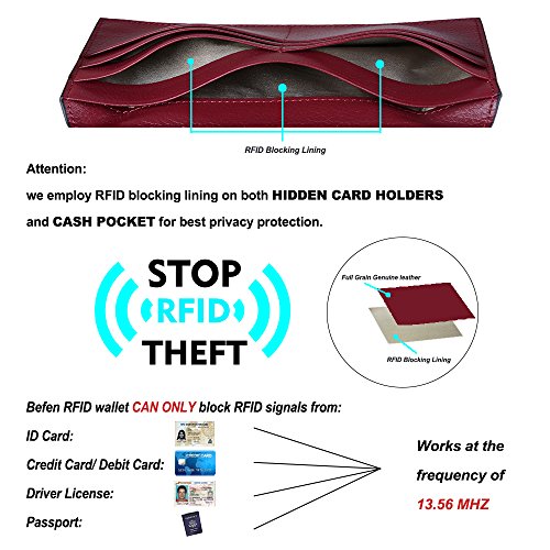 "I never have enough room in my wallets for cards. " But now, this Befen Women's Leather Multi Card Organizer Wallet can free you from this trouble! This compact and yet carefully designed clutch wallet is enough to hold a bunch of cards, with plenty of pockets to fit cash, bills, checkbook, register, coins and a up to 5.5 inches cellphone. The separated layout of this wallet can of course make everything organized. Using the RFID Blocking material, this wallet will protect your cards away from electronic pickpocketing. With the subtle glow of the fine leather, this wallet is gorgeous and timeless with super function for everyday use. About Us Befen brand wallet