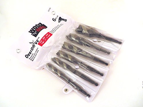 Wood Owl 6 Piece Set OverDrive Fast Boring Ultra Smooth Auger Brad Point Boring Bits Containing the Following Sizes 1/2”, 5/8”, 3/4”, 7/8”, 1” and 1 1/4” 00706