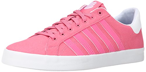 Durable canvas upper Court inspired sneaker Five stripe branding Vulcanized construction Canvas twill lining Brand : K-Swiss Item model num : 93739-683-M MPN(PartNumber) : 93739-683-M_Fresh Salmon/White EAN : 0888758262433 Product Dimensions(LxWxH) :