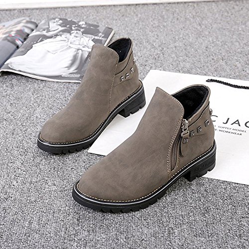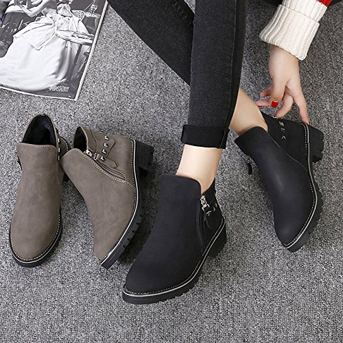 (WKIDWX)/Women's/Boots/DIRECT FROM USA/Women's Shoes Rubber Winter Combat Boots Boots Round Toe For Outdoor Gray Black