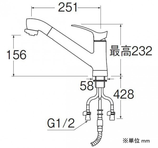 ●フレキ フレキホースとクイックファスナーで接続するタイプ。