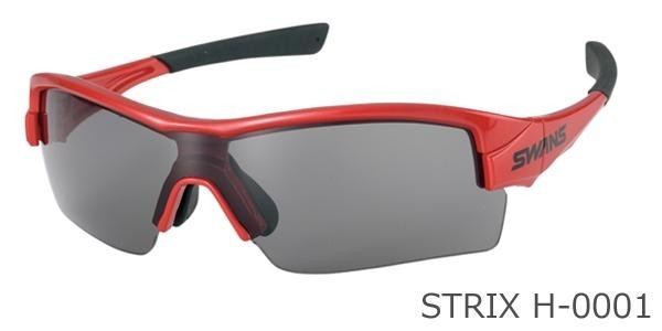 | 仕様 | ●フレームカラー:チタンレッド×チタンレッド×ブラック ●レンズカラー:スモーク ●レンズ:6カーヴ ●可視光線透過率:25% ●紫外線透過率:0.1%以下 ●レンズ交換可能(別売) ●STRIX-Iのアンダーリムは装着できません |