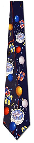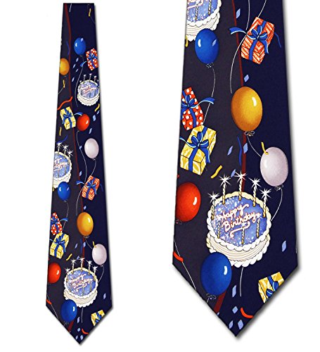 Binding : Apparel Product Description Everybody loves birthday cake but now you can skip the calories and added sugar and just wear the Happy Birthday Cake necktie! This fun novelty tie features an allover pattern of a birthday cake with colorful balloons, gifts and confetti on a navy background. The Happy Birthday Cake tie is the perfect way to celebrate someone's special day. 0