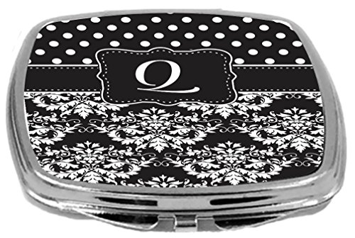 Rikki Knight Initial Q Damask Dots Design Compact Mirror, Black/White, 17 Ounce