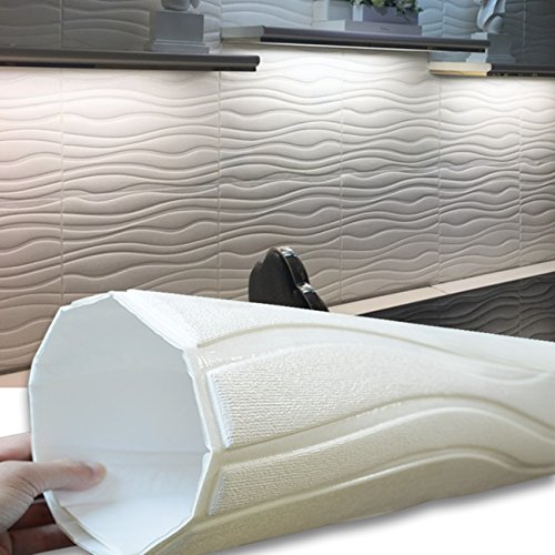 Wall Papper 5 Pack, Kasliny 3D Wall Stickers Self-adhesive Panel Decal PE Wallpaper - Peel and Stick Wall Panels for TV Walls, Sofa Background Wall Decor - White Wave