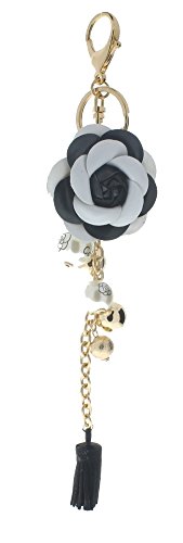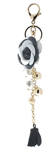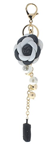 (T Square)/Accessories/Wallets, Money Key Organizers/DIRECT FROM USA/Key Chain Fob Phone Purse Charm Black White Flower Tassel Dangle Pearl Beads