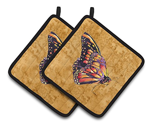 Caroline's Treasures Butterfly On Gold Pair of Pot Holders 8858PTHD, 7.5HX7.5W, Multicolor
