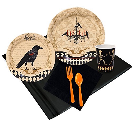 -. Feature : Add a little fright into your party with these skeleton themed decoartions.Party Pack includes: 8 Dinner Plates, 8 Dessert Plates, 9 oz. Paper Cups, 50 Lunch Napkins, 16 Forks and Spoons (8 each), and Plastic Tablecover.