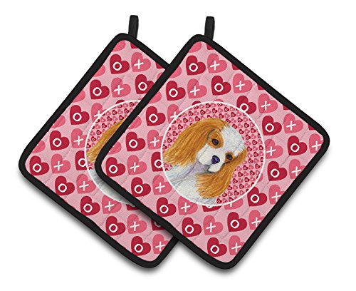 Caroline's Treasures Cavalier Spaniel Hearts Love & Valentine's Day Portrait Pair of Pot Holders SS4527PTHD, 7.5HX7.5W, Multicolor