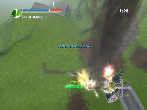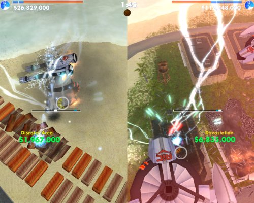 • Destroy the combat aircraft and defense machines of your corporate enemy sent to stop your weather rampage.