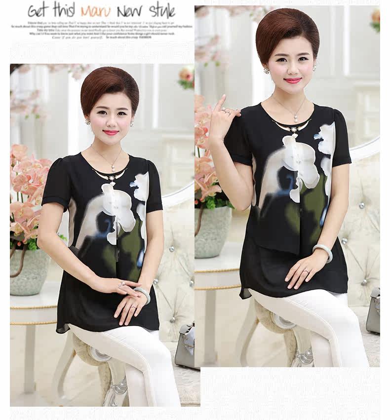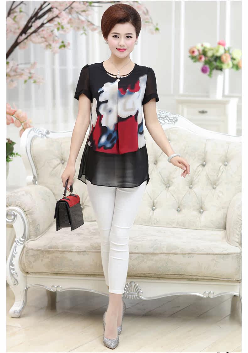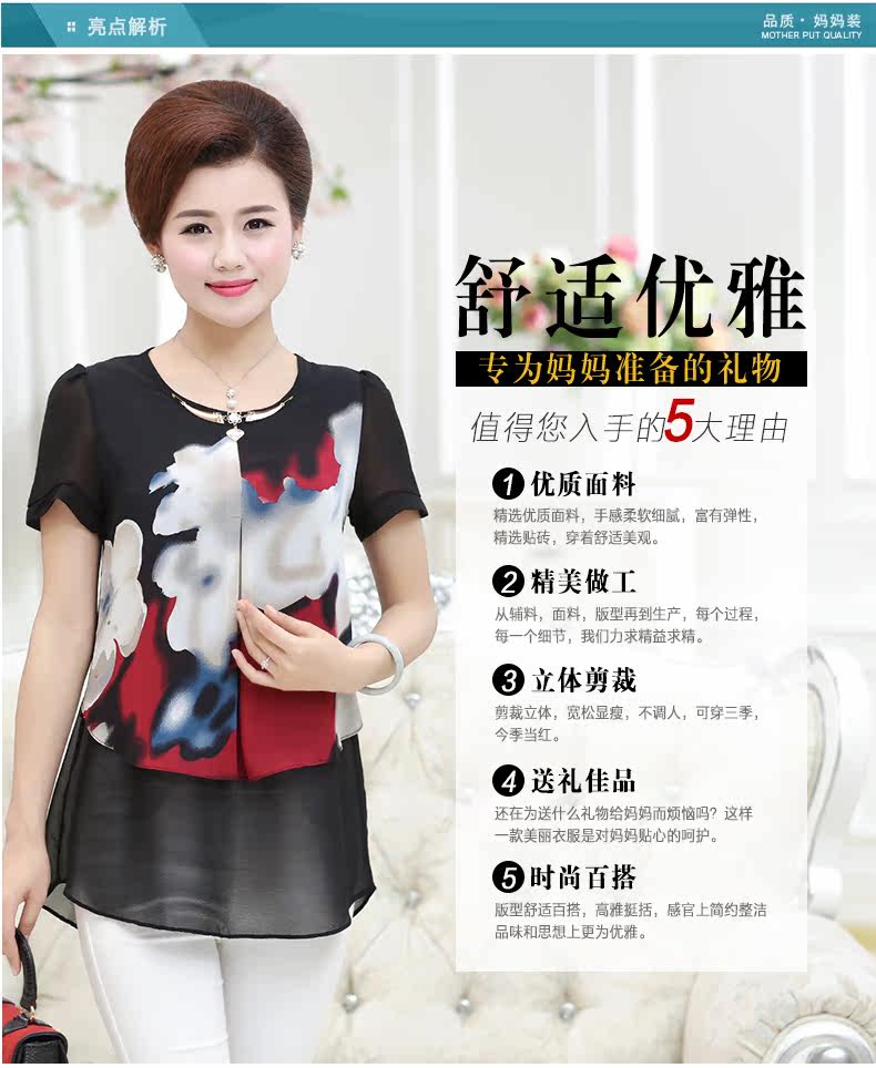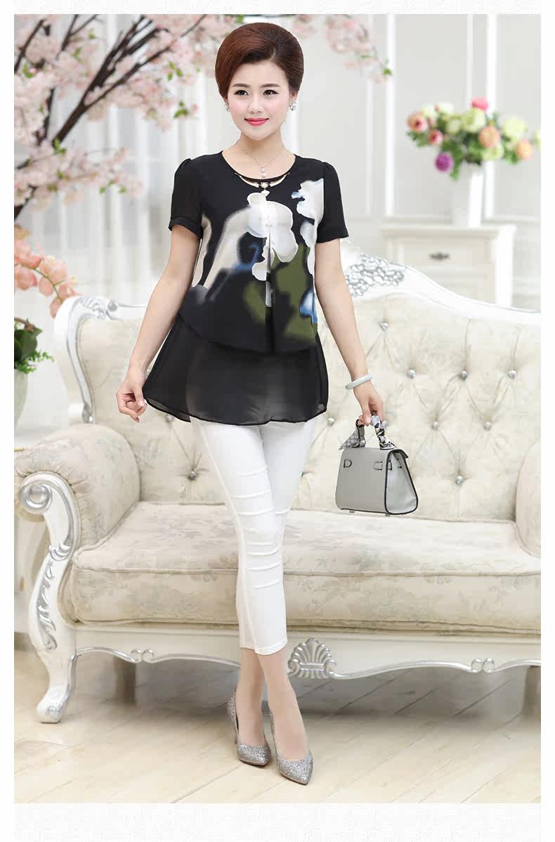 中年人女装夏季上衣40-50岁妈妈装夏装T恤中老年女装夏装短袖T恤